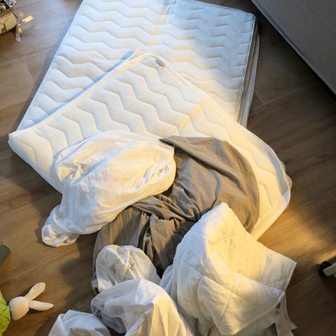 Lækker topmadras Tussöy fra IKEA med tilhørende rullemadras Basic T5 fra Jysk.