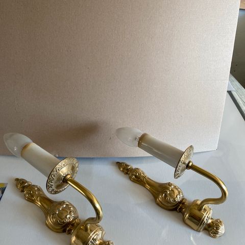 Super fine messing væglamper som har fået ny 2,5m ledning, ny afbryder og nye kerterør. Sælges som sæt.