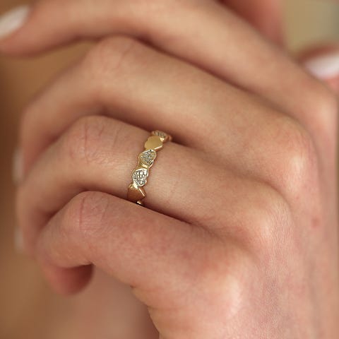 Hjerte ring m. safir og diamanter (14 karat guld)