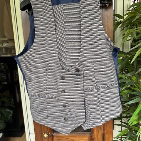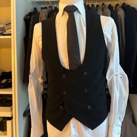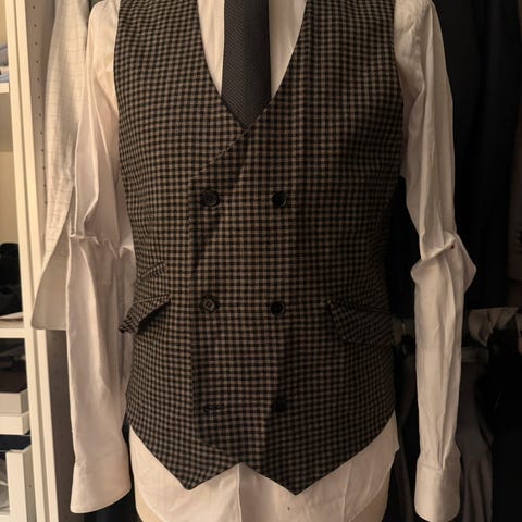 Grøn dobbeltradet vest. Uld/polyester blanding. Aldrig brugt med prismærker hængende. størrelse 48. Smal pasform. 200 dkk