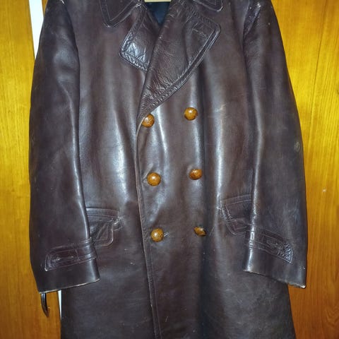 Civil Forsvaret Motorcykel frakke fra ca. 1950-60 måske før? lang model, er brugt men helt ok og iorden,