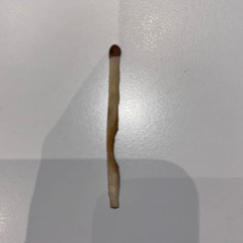 I massiv porcelæn. Guldkant i top og bund, samt Mørkegrøn ring ved bund i blank glasur. Øvre del med uglaserede/ru vandrette riller. Hul i top til enten afbrændte tændstikker eller ubrugte. Mærket under bund utydeligt med muligt nummer eller signatur, samt utydeligt grønt logo, muligvis Sarreguemines.