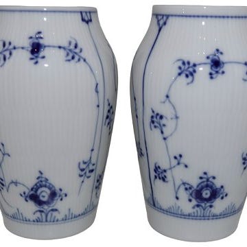 Royal Copenhagen Musselmalet Riflet, lille sennepskrukke med låg.