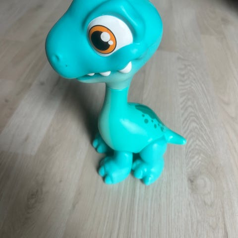 Gosnell Dinosaur Figurine i gul plast. Denne figur er cirka 10 cm lang og 5 cm høj. Den har et karakteristisk design med orange rygfinne og sorte pletter. Velegnet som legetøj eller samlerobjekt.