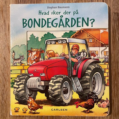 Billedbog med flotte fotografier, om dyrene på en bondegård.