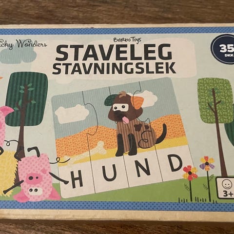 Masha og Bjørnen Staveleg Puslespil er et læringsspil for børn, der hjælper med at lære bogstaver og stave ord. Sættet indeholder 12 puslespil, hvor hvert stykke har et billede og bogstaver, som børnene kan matche for at danne ord som 'panda', 'hund' og 'æble'. Dette pædagogiske spil er farverigt og engagerende, designet til at fremme børns læsefærdigheder på en sjov måde.