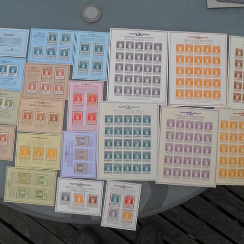 16-siders indstiksbog med 45 hæfter med sammentryk, heraf de sjældne nr. 1 og 2. Desuden 2 miniark, 3 Thule nytryk og 1 pakke-porto nytryk. Pålydende i alt over kr. 4500,-, men katalogværdien væsentlig højere.