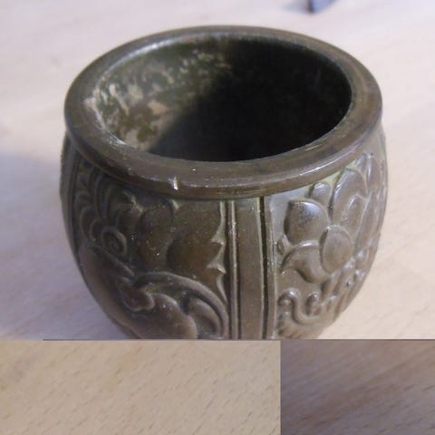 Skål med figur i disko metal .