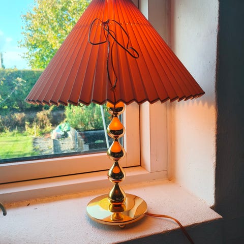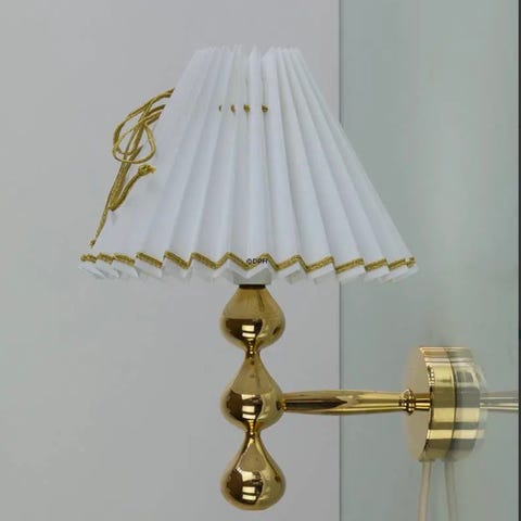 Denne lampe er med 3 dråber, guldbelagt og designet af Hugo Asmussen og er ca. 50 år gammelt. Har hængt på væggen og er aldrig pudset blot tørret af med våd klud.