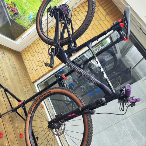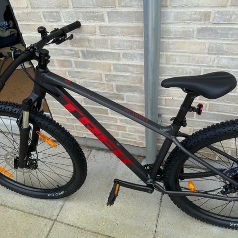 Begge dæk er flade pga at den har stået i kælderen i et stykke tid og for ikke rigtig brug for den pga jeg har lige købt en knallert så skal ikke rigtig bruge min cykel længere den virker som den skal der høre lige de to lys der er på billedet gearene virker perfekt der ikke noget galt med dem den køre rigtig godt