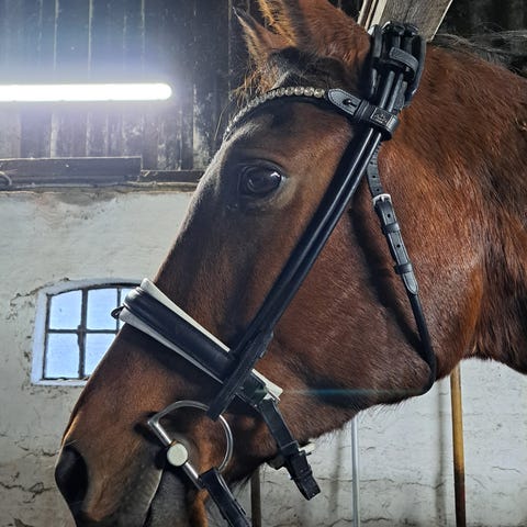 Trensen er sort med lak detalje på næsebånd.