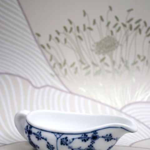 Royal Copenhagen Musselmalet Riflet Sovsekande med fast underskål No 201