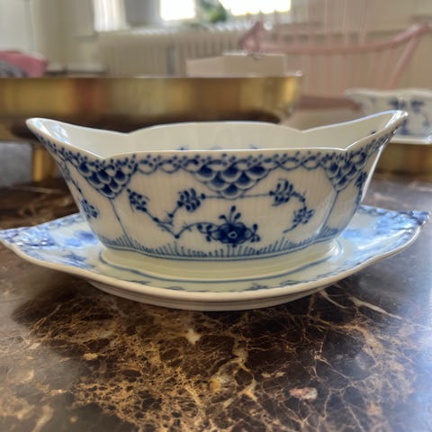 Royal Copenhagen Musselmalet Riflet Sovsekande med underskål No 201