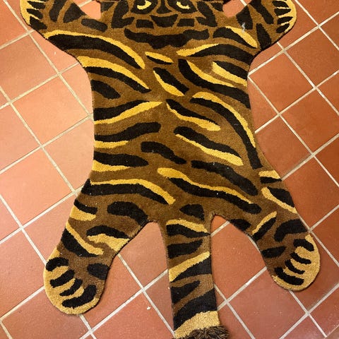 Gulvtæppe, Ferm living isbjørn, ferm LIVING gulvtæppe - isbjørn - off-white. Det håndknyttede tæppe er formet som et venligt isbjørnehoved, og luven har forskellige længder. Materiale: forside: 100% New Zeland uld. bagside: 100% bomuld. højde på luv: 3 cm Størrelse: H: 57,2 x B: 60 x D: 3 cm.