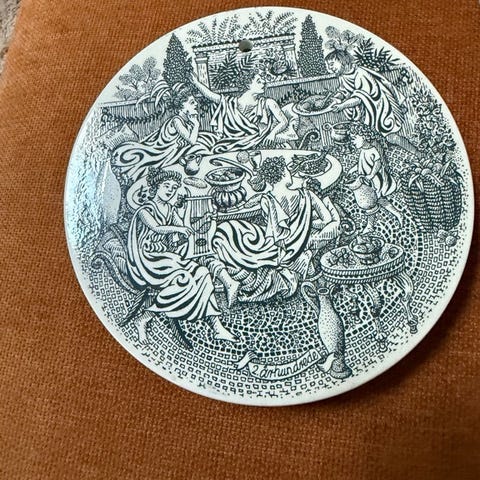 Keramik, 3x platter, "Gæstebud Gennem Tiderne"