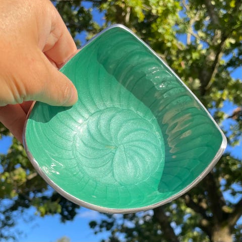 Fin og dekorativ lille skål bemalet med emalje.