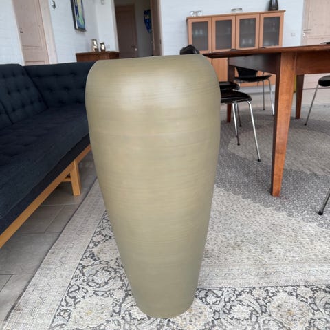 Stor flot gulvvase i alu - som ny. 50 cm. høj og 50 cm. Bred - blomsterpynt følger med uden beregning.