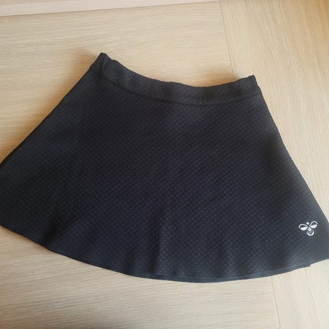 Hummel nederdel. Str. 152. Hvis med mørkeblåt mønster. Næsten ikke brugt. Ingen pletter.