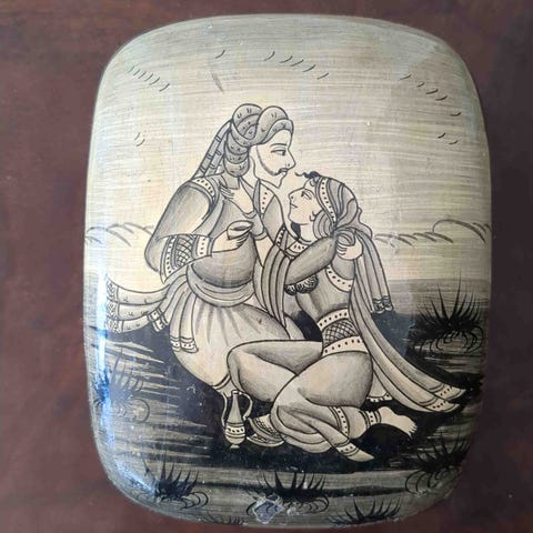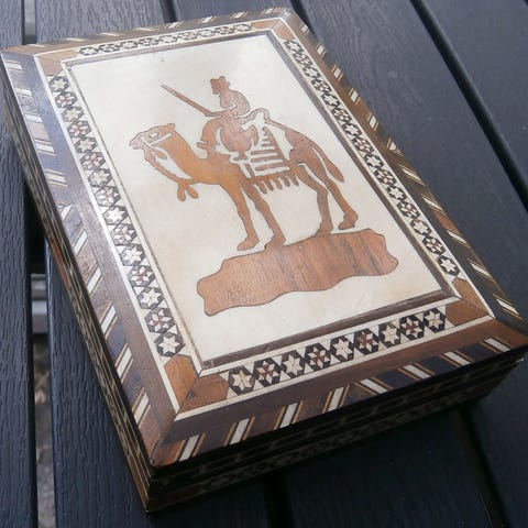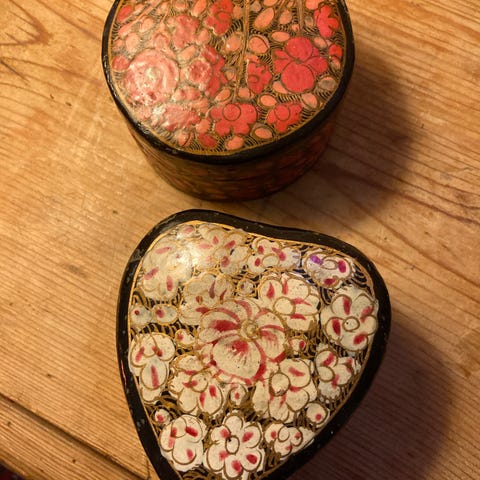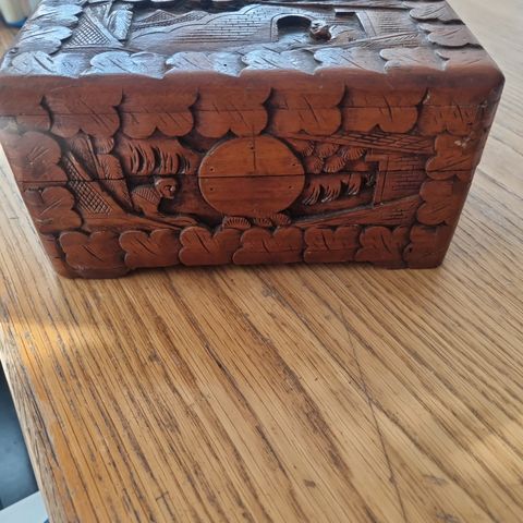 Smykkeæske i læder fra Thailand. I flot stand. Kr 30