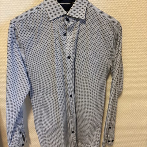 Facis since 1932 button-up shirt in size 40 with long sleeves and a collared neckline. It is designed for casual wear and suitable for all seasons. Petrol blue colour, custom fit, 55% linen, 45% cotton, only used once, as good as new.