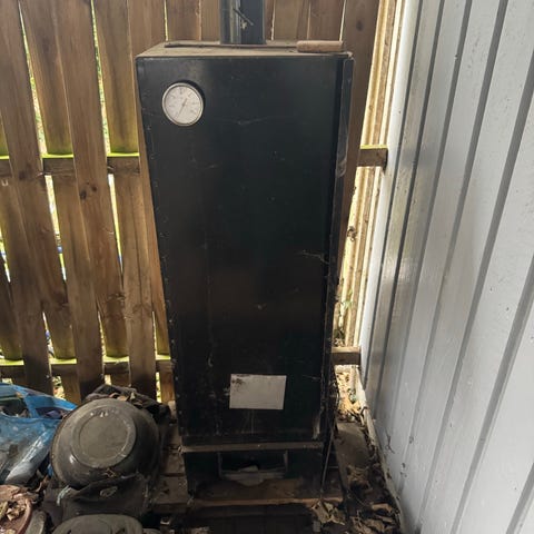 Rygeovn med to brændere. Der medfølger rygesmuld. Se billeder. Står i Vorupør men kan også tages med til Aarhus.
