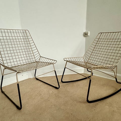 Stolen er en af de lidt mere sjældne med sæde og ryg i lakeret træ og fremstår i flot stand.