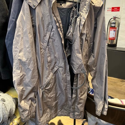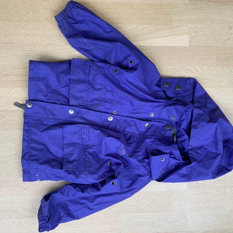 Flot sommergul Ver de Terre regnjakke. Str 12. Talje justeres med bindebånd på ryggen. Taske til jakken følger med.