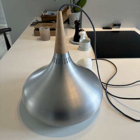 Ledningerne er 75 cm lange, da de har siddet i en lysskinneadaptor. De passer dermed i længen til over et spisebord.