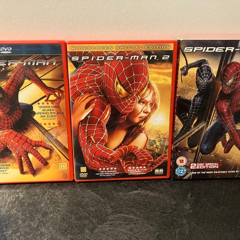 De tre Sam Raimi / Tobey Maguire Spider-Man film i boks. Dansk tekst og i folie.
