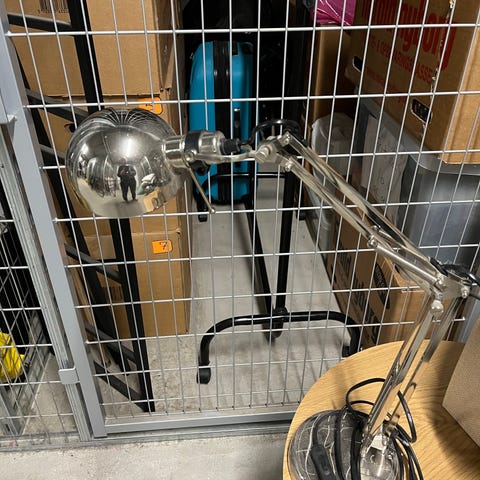 Sølvfarvet Ike skrivebordslampe, lidt brugsspor men god kvalitet og tung fod.