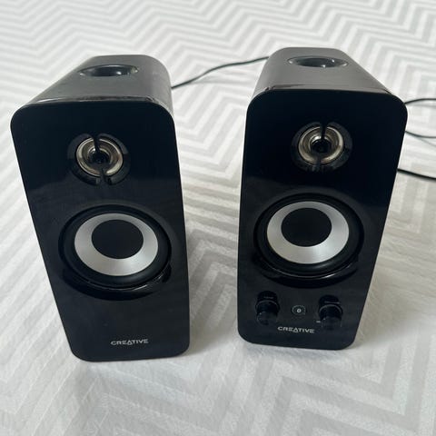 Jeg sælger mine højttalere creative T5 wireless. De virker bare udmærket og har aldrig fejlet noget.