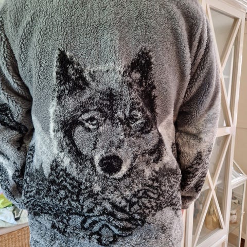 Unisex fleecetrøje i rød og sort med lommer. Intet mærke m str men er svarende til en str M. Kan afhentes i Rødovre, Ølstykke eller sendes hvis køber betaler portoen.
