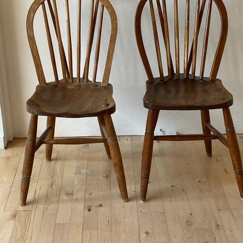 2 fine gamle stole med armlæn, nemme at ombetrække kender ikke træsorten måske nøddetræ