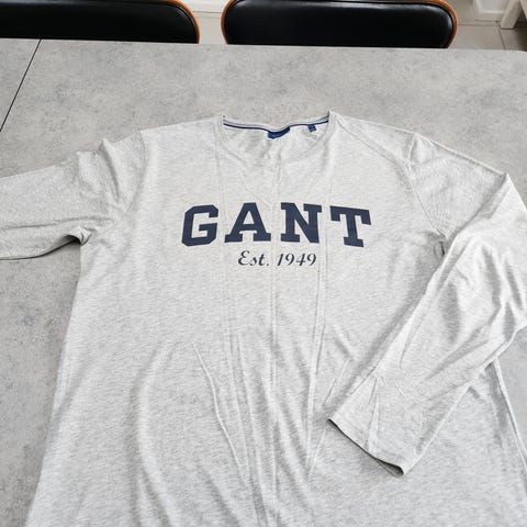 GANT langærmet t-shirt i farven grå, kvaliteten er bomuld og brugt meget lidt og er i rigtig fin stand.
