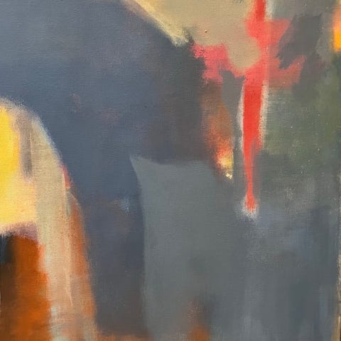 Jette Nielsen f. 1958. Akryl på lærred, 'Sort motiv med avis' signeret JN. Mål: 80 x 60 cm (84 x 64 cm).