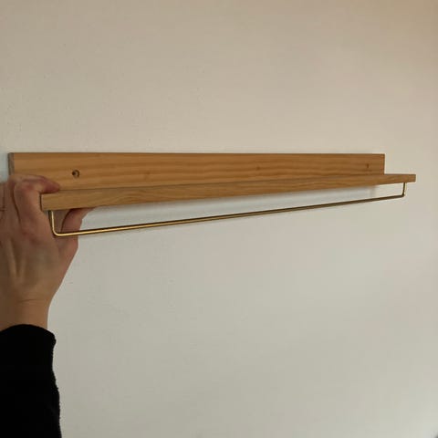 Hylde med plads til bøjler under. Håndlavet fra furniture by sinnerup. Nypris 2500