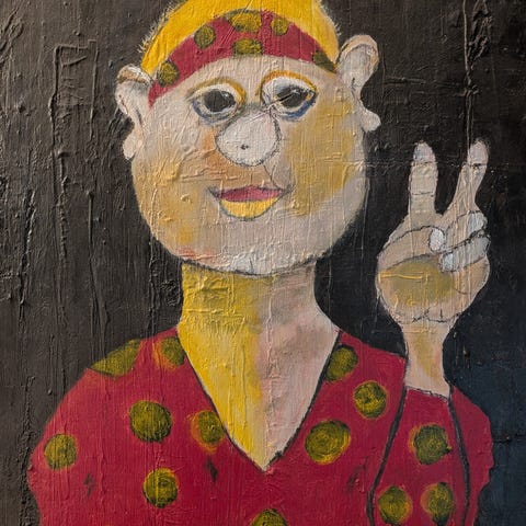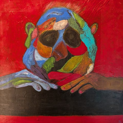 Jytte Gjerka f. 1943. Figurkomposition. Akryl på lærred. 60x80cm(64x84).