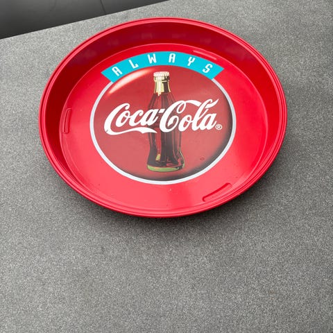 Coca Cola bakke i rød og hvid metal. God stand m. lettere brugsspor og patinering. Måler ca 35 cm.