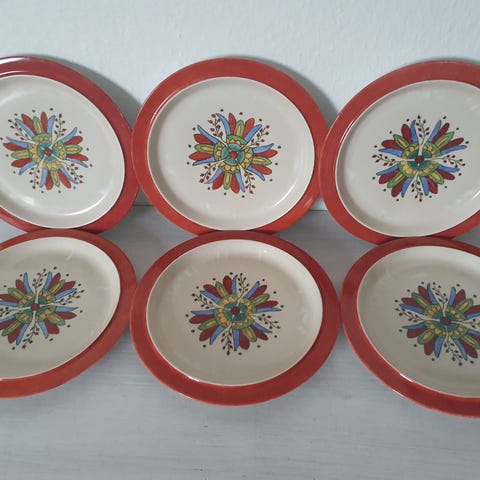 Keramik, Retro blå frokosttallerken desserttallerkner , Retro, 6 stk