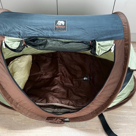 Fantastisk telt, som nemt kan medbringes. Jeg har udelukkende brugt det inde...f.eks hvis man skal til et arrangement, hvor ens barn har brug for en lille hyggekrog hvor man også kan tage sig en lille lur😊 Soveposen er ubrugt. Telt og madras ser ud som ny. Ikke været udsat for røg eller dyr.