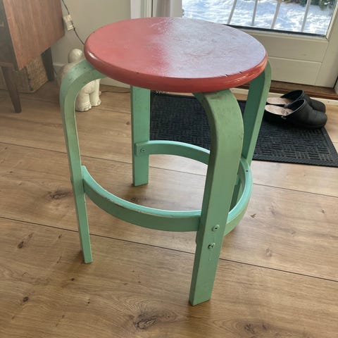 Fire retro taburetter / skamler. Købt fra gammel skole, men får dem ikke istandsat alligevel. Jern stel. Kan blive rigtig fine ved istandsættelse- eller behold dem som de er. Sælges samlet.