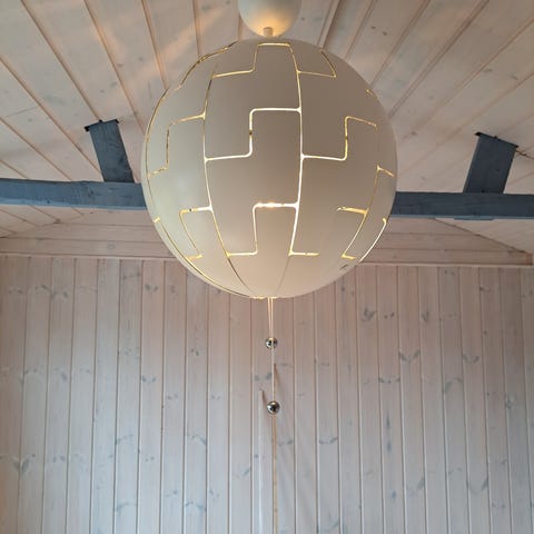 IKEA loftlampe i hvid plastik. H: 33 cm og D: 50 cm. Den er ideel til stuer eller soveværelser og passer godt til moderne indretning. Materialet er let at rengøre og vedligeholde.