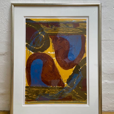 Flot Per Kirkeby litografi i lidt slidt sort træramme.