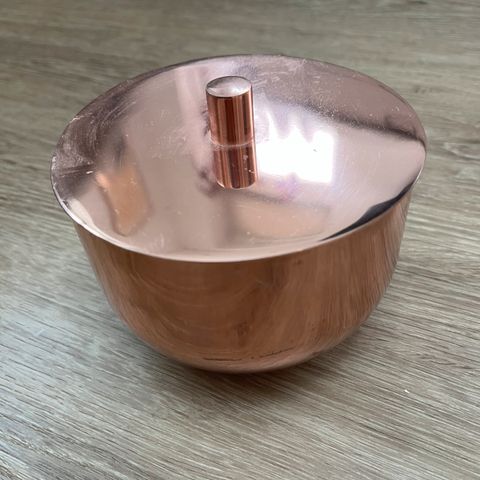 Kobber/messingfarvet metaldåse med låg (18 cm)