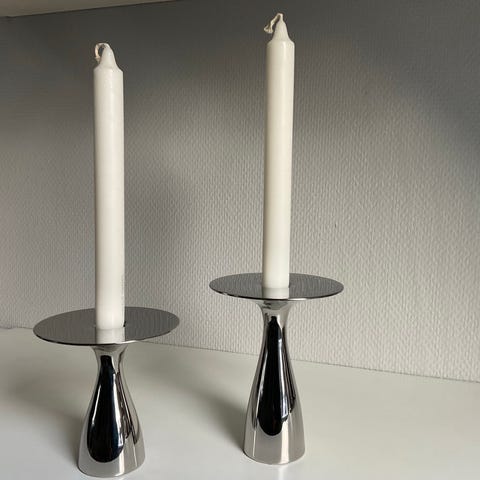 Georg Jensen's Alfredo lysestager er et must-have til enhver indretning. De er fremstillet i rustfrit stål og har en kurvet fod, der bugter sig opad og ender i en bred og skinnende overflade. Når du tænder et lys i stagen, vil det levende lys blive reflekteret på smukkeste vis.