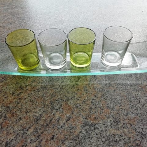 Lysfad i glas, grønligt. - til 3 lys og pynt.