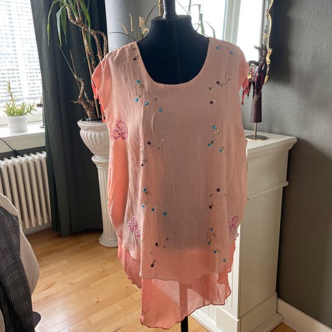 Sommerbluse købt i Rom. Str. S. Materiale polyester og elastan. Brugt og vasket en enkelt gang.