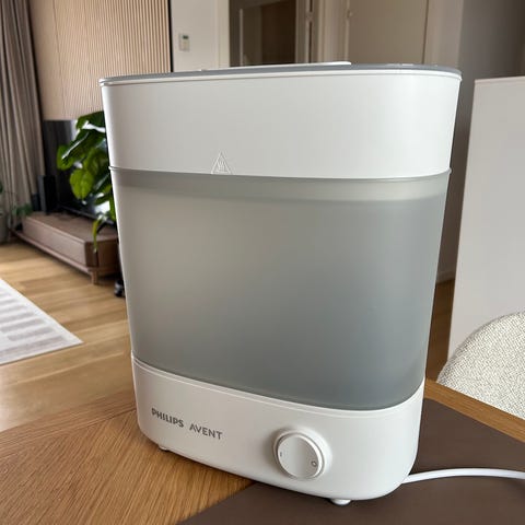 Dampsterilisator, Philips Avent, Dampsterilisator til mikroovn steriliserer og rengører på 2 minutter hurtigt og praktisk sutteflakser, bideringe og andre ting til babyen, så den skånes optimalt fra skadelige bakterier. Også velegnet til sterilisering af brystpumper.