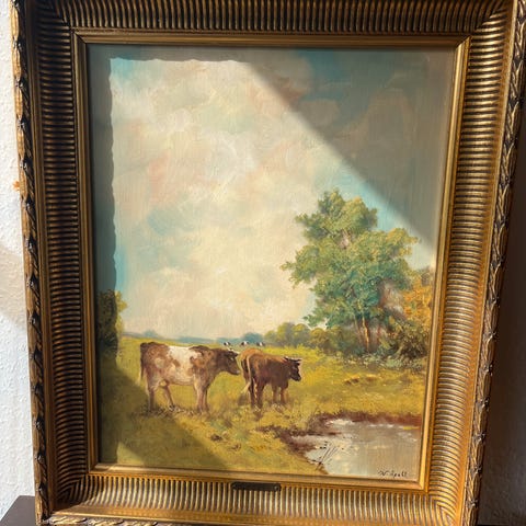 Oliemaleri, W apoll, motiv: Landskab, b: 53 h: 44, landskab med køre