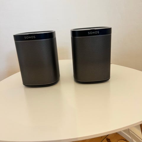 Sonos play:1 højttalere i hvid inklusiv sonos stander.